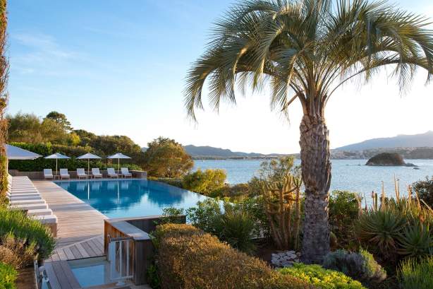 Chaque chambre ou suite s’ouvre sur une vaste terrasse panoramique dominant la baie.